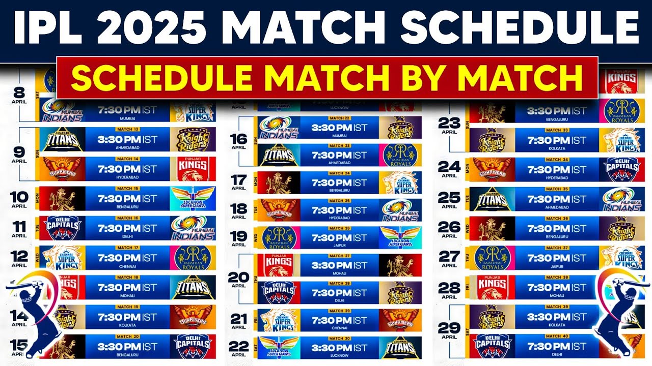 IPL 2025 Full Schedule : Complete Fixtures, Timings, Venues, and Key Matchups