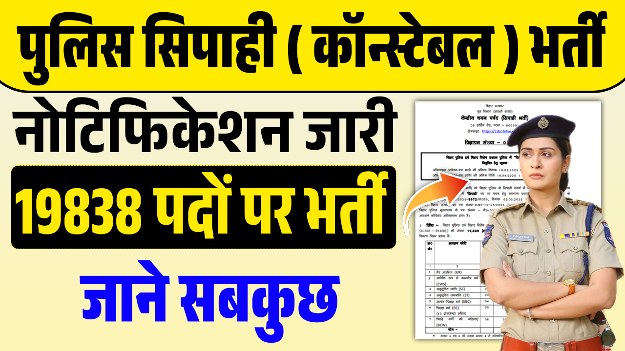 Bihar Police Constable Vacancy 2025 : Advertisement Released for 19,838 Posts